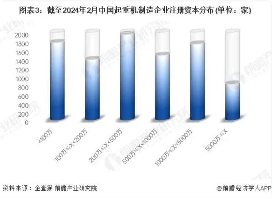 ——起重機(jī)制造企業(yè)注冊(cè)資本在500萬(wàn)以上的數(shù)量占比超50%